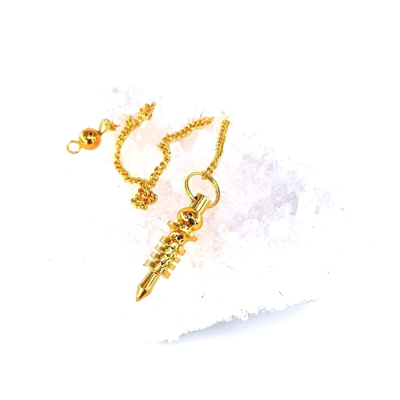 Kendi kendini temizleyen bir başka kristal olan Selenit Sarkaç. Selenitten yapılmış sarkaçlar size insanları, çakraları, mekanları ve diğer kristalleri arındırmanın yollarını gösterir.