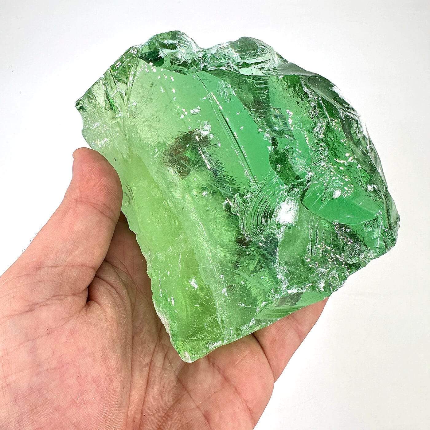 Öncelikle şunu söylemeliyim ki Yeşil Obsidyen aslında bir camdır. Zaten normaldede obsidyenin kendiside bir tür cam dır. Obsidyen, doğanın elinde şekillenmiş kristal bir cam olmasına rağmen, olağan camlardan çok daha derin ve gizemlidir. Doğası gereği, sahtesi üretilebilir, ancak gerçek obsidyenin doğal güzelliği ve enerjisi benzersizdir. Yeşil obsidyeninde sahtesi çoktur. Genelliklede cam fabrikası atıklarından alınıp satılır. Sahte obsidyen, bazen gerçek obsidiyeni taklit etmek için yapay malzemelerden üretilir. Ancak bu taklitler, gerçek doğallığın ve derinliğin yerini tutamazlar. Gerçek obsidyenin yüzeyindeki karmaşık desenler ve içindeki doğal çatlaklar, onun eşsizliğini ve doğallığını ortaya koyar. Obsidyen doğada çok farklı renklerde bulunabilir. Cam da çok farklı renklerde bulunuyor. Diğer obsidyen türlerine buradan bakabilirsiniz.